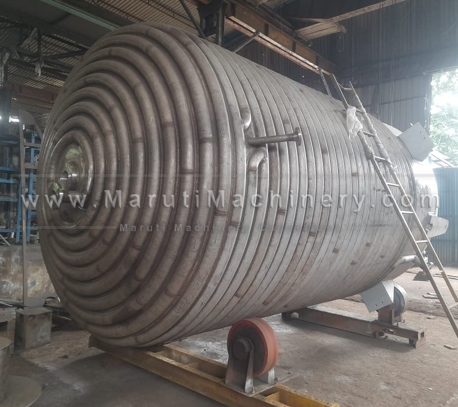 Brand New SS316L Reactor For Sale Capacity 23 KL Material of Construction SS/316L Shell Height 3855 mm Shell ID 2570 mm Shell Thickness 8 mm Top & Bottom Discs 498 mm x 8 mm Thickness Outside SS Limpet Coil Agitator Make GMM Pfaudler Impeller Speed 71 rpm Drive Single Mechanical Seal Electric Motor 5.5 KW Gear Box Bonfiglioli Helical AS55F 20.4:1/P132/V1