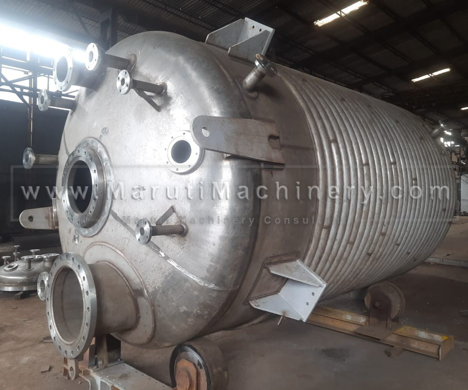 Brand New SS316L Reactor For Sale Capacity 23 KL Material of Construction SS/316L Shell Height 3855 mm Shell ID 2570 mm Shell Thickness 8 mm Top & Bottom Discs 498 mm x 8 mm Thickness Outside SS Limpet Coil Agitator Make GMM Pfaudler Impeller Speed 71 rpm Drive Single Mechanical Seal Electric Motor 5.5 KW Gear Box Bonfiglioli Helical AS55F 20.4:1/P132/V1